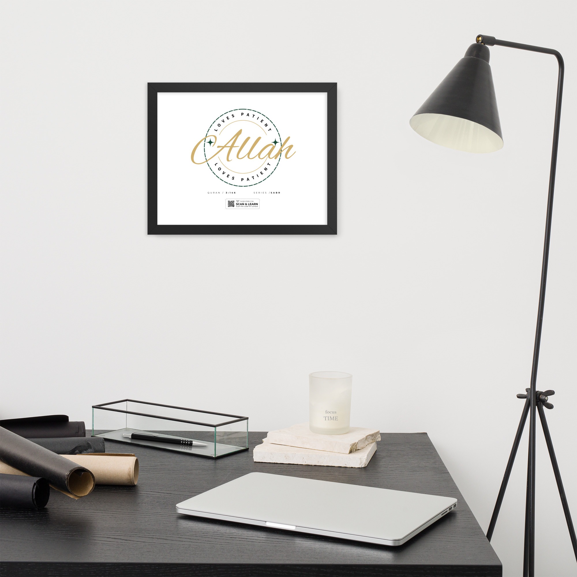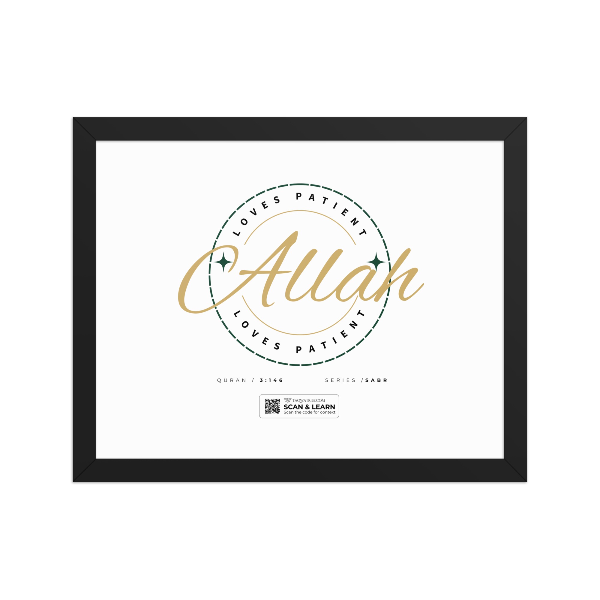 • QR code discreetly included – Scan to study Quran 3:146 in depth